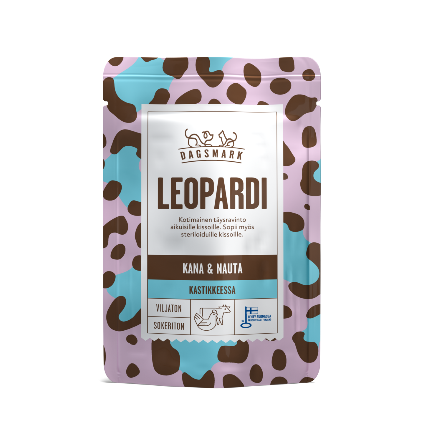 Dagsmark LEOPARDI kotimainen kissan täysravinto 80g kanaa ja nautaa kastikkeessa