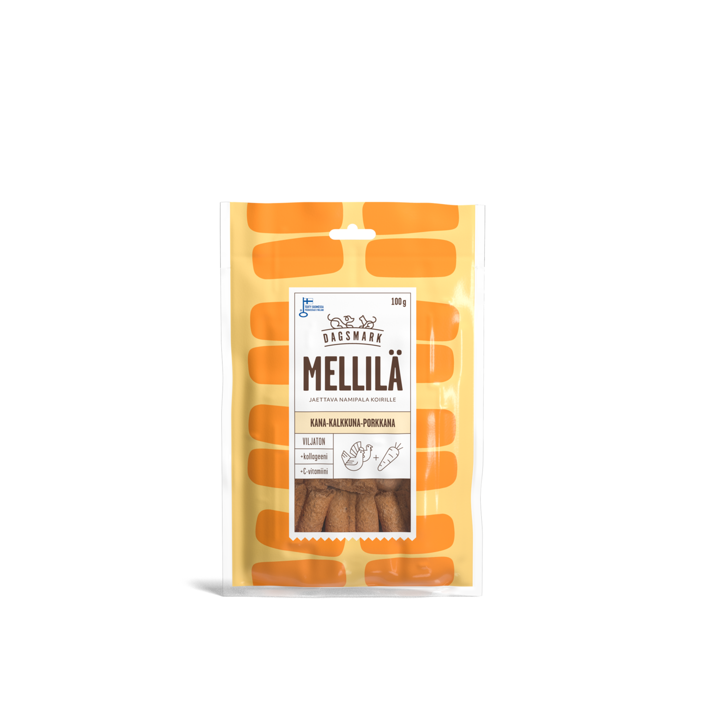 Dagsmark MELLILÄ kana-kalkkuna-porkkana jaettava nami koirille 100g