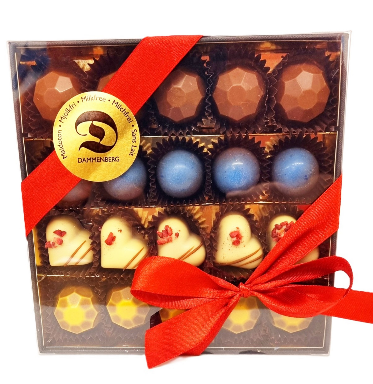 VegaaninenDammenberg allergiavapaa konvehtilajitelma. Pähkinätön, gluteeniton, kananmunaton, maidoton, vegaani, soijaton.