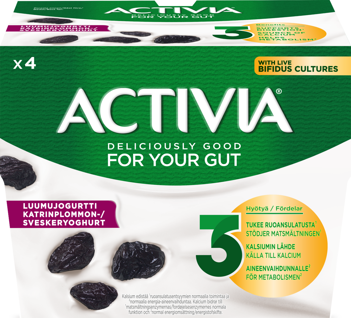 Activia luumujogurtti on täyteläisen pehmeä, maukasta luumua sisältävä herkullinen jogurtti, joka sopii niin aamiaiseksi kuin välipalaksi. Nauti sellaisenaan tai yhdessä murojen, myslin, hedelmien tai marjojen kanssa.