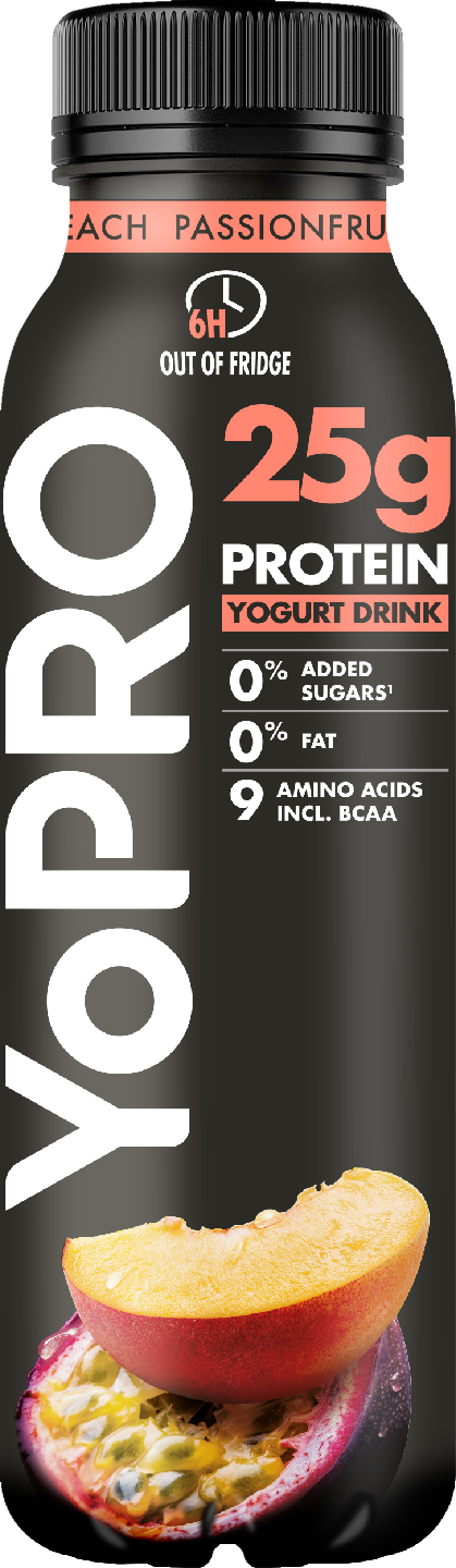 LaktoositonYoPro runsasproteiininen juotava jogurtti persikan ja passionhedelmän 300 g. Täydellinen nautittavaksi treenin jälkeen tai täyttävänä välipalana. Uusi juotava jogurtti YoPro sisältää runsaasti proteiinia (25 g per pakkaus) ja BCAA:ita. Ei lisättyä sokeria ja 0 % rasvaa. Laktoositon & gluteeniton. Käytännöllinen pakkaus mahdollistaa nauttimisen niin tien päällä kuin kotonakin. Tuoreella persikan ja passionhedelmän maulla.