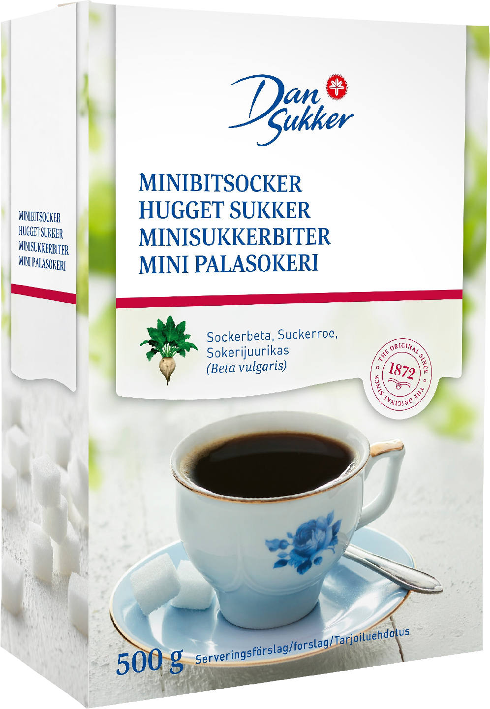 Dansukker Mini palasokeri on valkoinen, pieni säännöllisen muotoinen palasokeri kahvin ja teen makeuttamiseen. Liukenee nopeasti. Palan paino n. 2 g. Kätevä pöytäpakkaus. Kuivassa säilytettynä sokeri säilyy lähes rajattomasti.