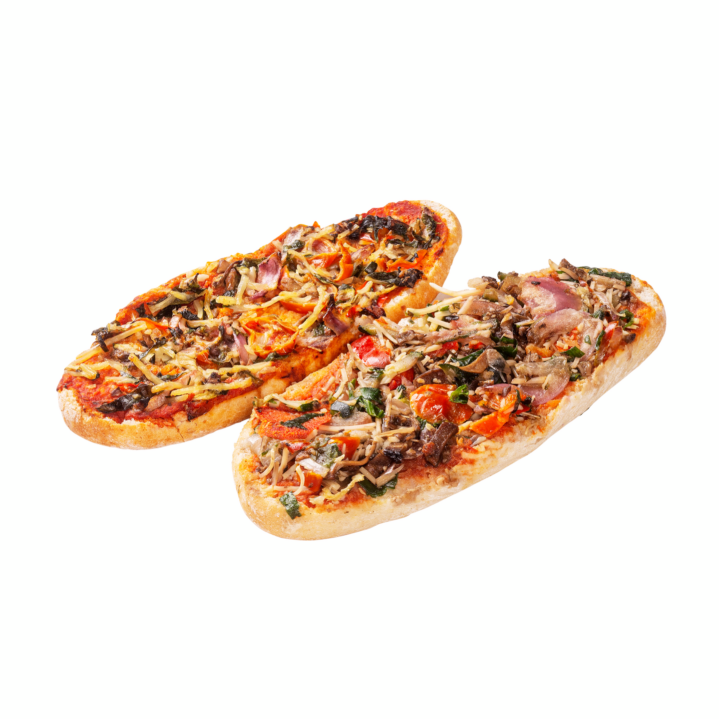 Laadukas ja helppokäyttöinen pizzaleipä monipuoliseen käyttöön. Rapean rustiikkisen vehnäleivän päällä herkkusieniä, punasipulia, kesäkurpitsaa ja kirsikkatomaattia sekä vegeraastetta. Helposti mukaan otettava pikkusuolainen.