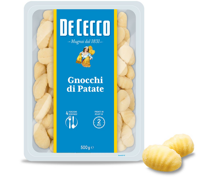 De Cecco Gnocchi perunagnocchi. Italialaiseen keittiöön kuuluvat perunagnocchit ovat herkullinen ja monipuolinen lisuke jotka valmistuvat vaivattomasti pastan tapaan.
