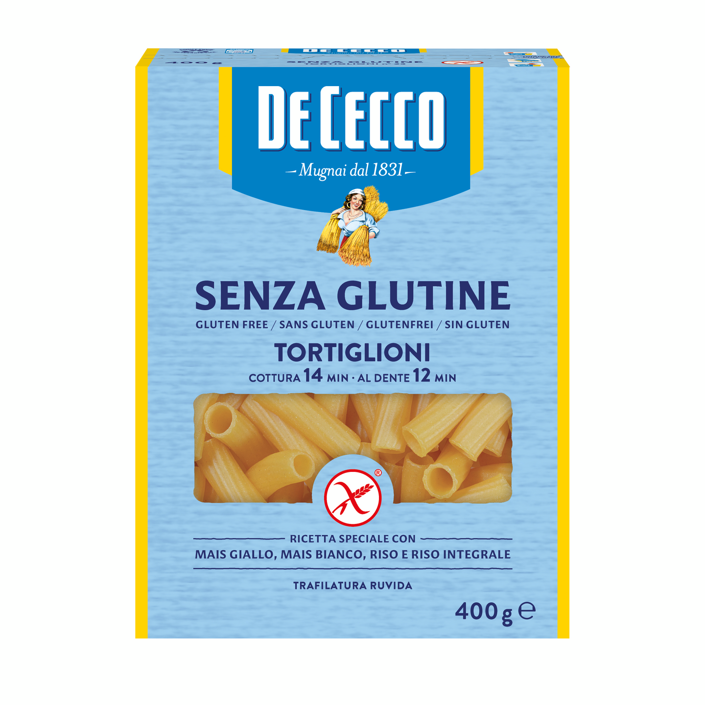 VegaaninenDe Ceccon missiona on tuoda erinomaisuutta pöytään ja jakaa se kaikille: gluteenittomalla reseptillä on poikkeuksellinen maku ja väri sekä kiinteys keittäessä. De Ceccon vallankumouksellinen gluteeniton Tortiglioni-putkipasta on valmistettu luonnollisesti gluteenittomista viljoista: riisistä ja maissista. Premium-tason gluteeniton tuote - niin hyvä, että siitä tulee koko perheen pasta.