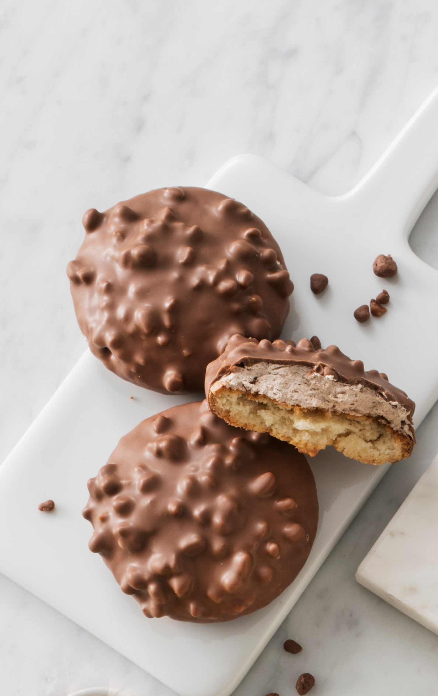 Sokeri, MANTELI (17%), kasviöljy (palmu, kookosöljy, rapsi, karite), KANANMUNANVALKUAINEN, glukoosisiirappi, MAITOJAUHE, VOI (2%), kaakaovoi, kaakaojauhe, suola, kaakaomassa, emulgointiaineet (SOIJALESITIINI, aurinkokukkalesitiini, kasviperäinen E471), sakeuttamisaine (guarkumi), happamuudensäätöaine (natriumkarbonaatti), aromi, pintakäsittelyaine (arabikumi). Saattaa sisältää HASSELPÄHKINÄÄ.