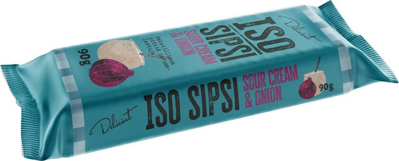 VegaaninenDeliciestin Iso Sipsi Sour Cream & Onion on paketillinen pitkiä perunalastuja. Sour Cream & Onion on klassikkomaku, jota ei yksinkertaisesti voi vastustaa. Nämä yllättävän pitkät ja rouskuvan rapeat sipsit on pakattu kätevän kokoiseen pakkaukseen, jotta voit herkutella missä ja milloin vain. Sopii myös vegaaneille!