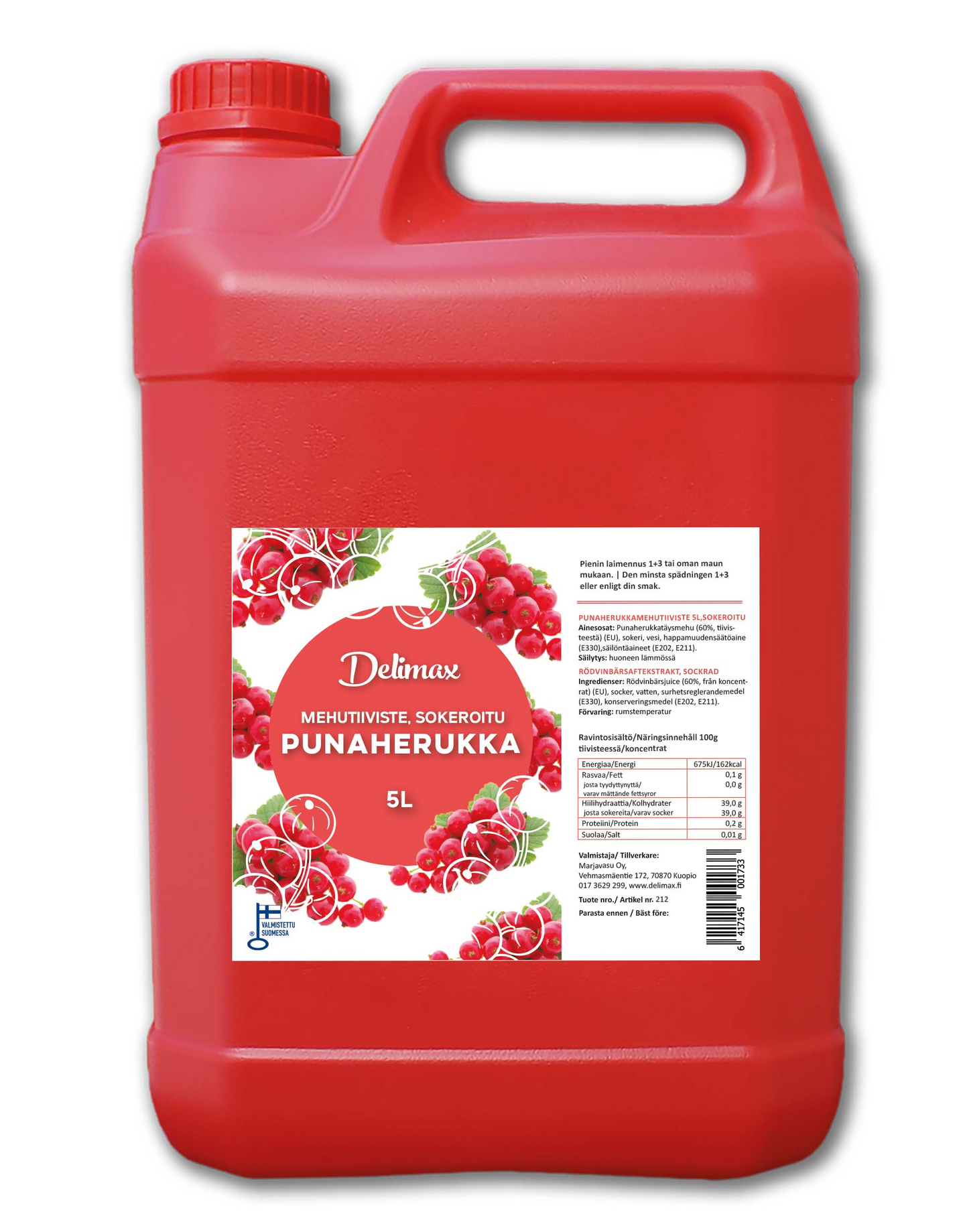 DeliMax Punaherukkamehutiiviste on laadukas ja riittoisa sokeroitu punaherukkamehutiiviste, joka säilyy avaamattomana huoneen lämmössä.
