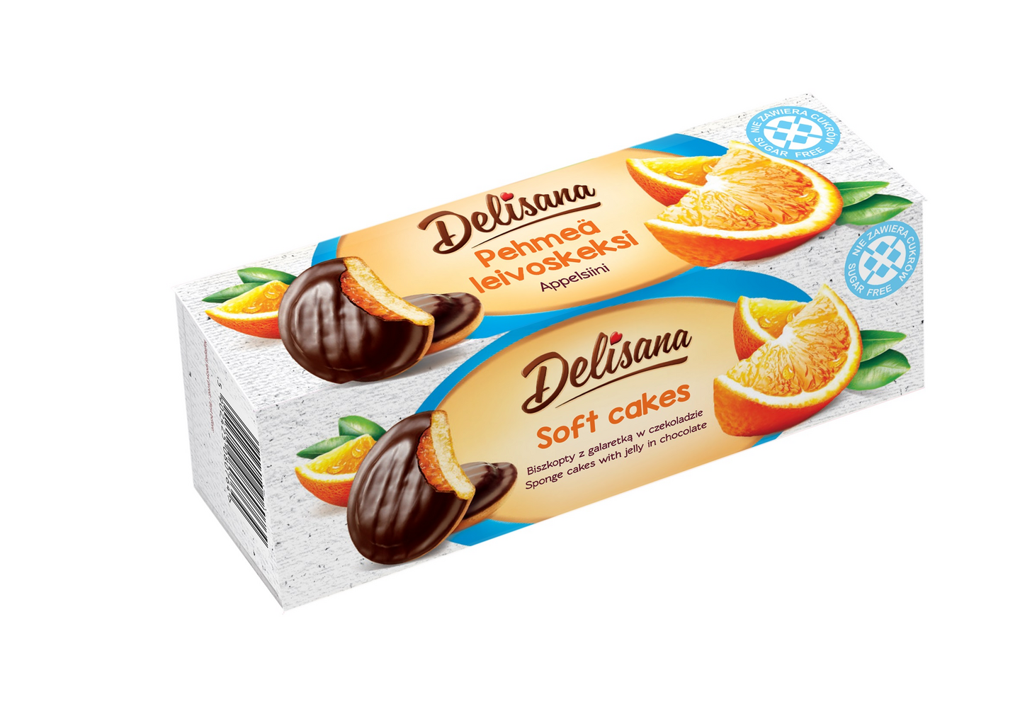 Sokerittomia suklaalla päällystettyjä pehmeitä keksejä, joissa on appelsiininmakuinen täyte. Makeutettu makeutusaineella.