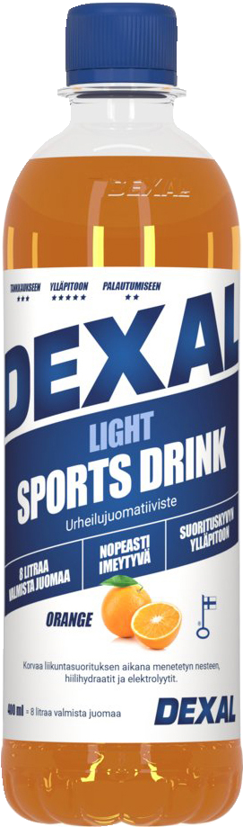 Dexal Light Sports Drink on appelsiininmakuinen urheilujuomatiiviste nestetasapainon ja lihasten energiatasojen ylläpitoon. Hiilihydraatti-elektrolyyttiliuos ylläpitää suorituskykyä pitkäkestoisen harjoituksen aikana. Se auttaa korvaamaan fyysisen suorituksen aikana kehon menettämät nesteet ja tärkeimmät elektrolyytit ja parantaa veden imeytymistä. Sisältää makeutusainetta.