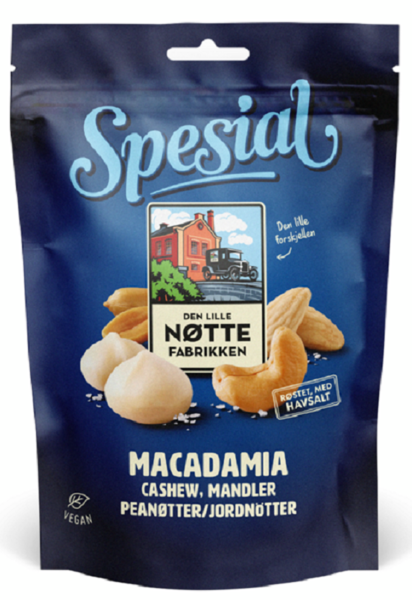 VegaaninenHerkullinen sekoitus sopivasti suolattuja pähkinöitä: macadamia, cashew, manteli ja maapähkinä.