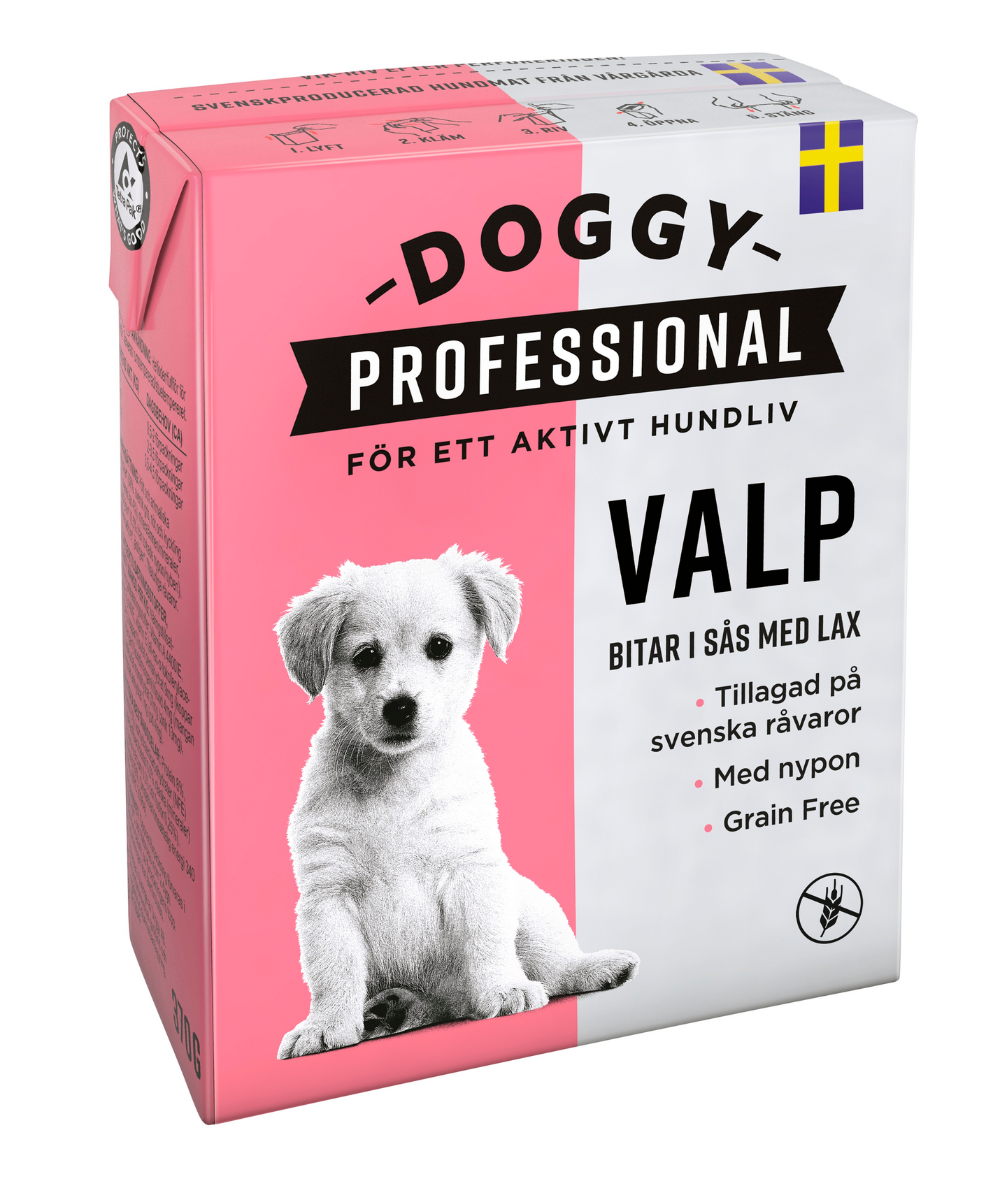 Valp märkäruoka pennuille on ravitsemusasiantuntijoiden kehittämä ja Ruotsissa valmistettu täysipainoinen, herkullinen ruoka pentukoirille. Se on valmistettu täysin ruotsalaisista, luonnollisista raaka-aineista. Lohella maustettuja paloja kastikkeessa sisältää 50% prosenttia lihaa ja eläinperäisiä tuotteita, jotka ovat kaikki ruotsalaista alkuperää (sikaa, nautaa ja kanaa sekä lohta). Vehnätön ja viljaton ja sisältää ruusunmarjaa, jossa on paljon antioksidantteja. Pennut tarvitsevat runsaasti energiaa ja nestettä. Voit tarjota märkäruoan sellaisenaan tai osana kuivaruoka-annosta tai palkkanamina. Tölkkiä ympäristöystävällisempi Tetra Recart® pakkaus on myös helppo ottaa matkalle mukaan, sillä sen saa auki ilman saksia.