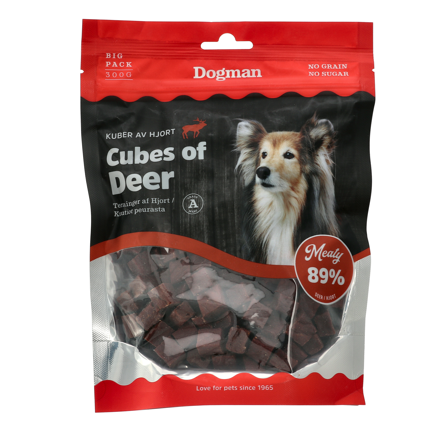 Maistuva koiranherkku, jossa peura ainoana lihanlähteenä. Valmiit palkkiopalat sopivat myös herkkävatsaisille ja nirsoille koirille. Ei viljaa tai lisättyä sokeria. Annetaan palkintona tasapainoisen ruokavalion ohella.