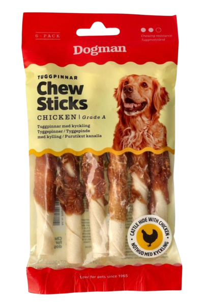 Maukkaat purutikut naudanvuodasta ja pinnalle kääritystä kanasta. Erinomainen nirsoillekin koirille! Täyttää pureskelun tarpeen ja edistää hampaiden terveyttä. Valvo koiraa aina sen pureskellessa luita. A-luokan kanalla.