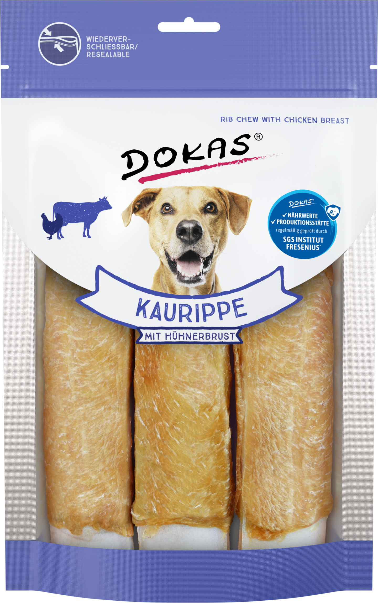 Klassinen koiran puruluu ribsin muodossa, herkullisella kananrinnalla kuorrutettuna. Tämän herkkupalan parissa koira viihtyy hyvän tovin!