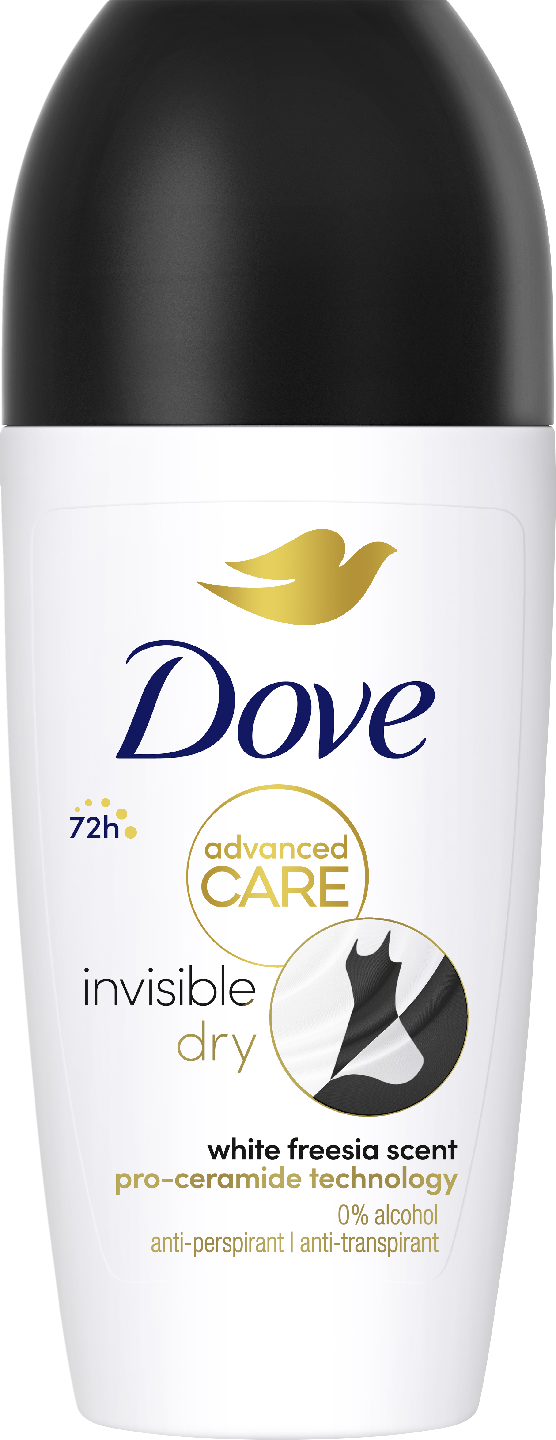 Hyvästit hikoilu ja pahat hajut! Etsitkö tehokasta deodoranttia, joka suojaa hikoilulta ja pahoilta hajuilta eikä jätä valkoisia jälkiä vaatteisiisi? Dove 72h Advanced Care Invisible Dry antiperspirantti deodorantti roll-on on juuri sellainen. Se on kehitetty tarjoamaan näkymätöntä antiperspiranttisuojaa kainaloillesi. Dove 72h Advanced Care Invisible Dryn ansiosta nautit miellyttävästä tuoksusta ihollasi koko päivän. Siinä on hienostunut valkoisen freesian tuoksu. Doven kehittämän tehokkaan Advanced Care -koostumuksen ansiosta hoidat kainaloitasi ja saat tehokkaan suojan, joka on lempeä iholle ja pitää hajun ja hien loitolla jopa 72 tunnin ajan. Dove deodorantti auttaa lievittämään kainaloiden ärsytystä ja pitää kainalot suojattuina ja hoidettuina kaikissa tilanteissa. Roll-on sisältää 0 % alkoholia joten se ei ärsytä ihoa. Tuotteen Triple Moisturising -koostumuksessa on mukana kosteusvoide, jonka ansiosta roll-on on paitsi hikoilulta suojaava, myös erittäin hoitava. Tuotteen sisältämät kosteusvoiteet tehostavat ihosi omaa suojaa ja auttavat säilyttämään sen luontaisen kosteuden pintaa syvemmällä. Levitä tätä alkoholitonta antiperspiranttideodoranttia tasaisesti kumpaankin kainaloon. Levitä tarpeen mukaan lisää päivän aikana. Saat parhaan deodoranttisuojan, kun varmistat, että kainalot ovat puhtaat ja kuivat ennen antiperspirantin levittämistä. Hyvä idea on säilyttää deodoranttia kodin kylpyhuoneen lisäksi esimerkiksi työpaikalla työpöydän laatikossa. Laita myös yksi Dove roll-on mukaan kuntosalilaukkuusi, niin se on aina mukanasi, kun tarvitset hyvää suojaa. Hoitava Dove Advanced Care Invisible Dry antiperspirantti deodorantti on tehty suojaamaan tehokkaasti hikoilulta ja epämiellyttäviltä tuoksuilta. Dove on PETA Vegan -sertifioitu.