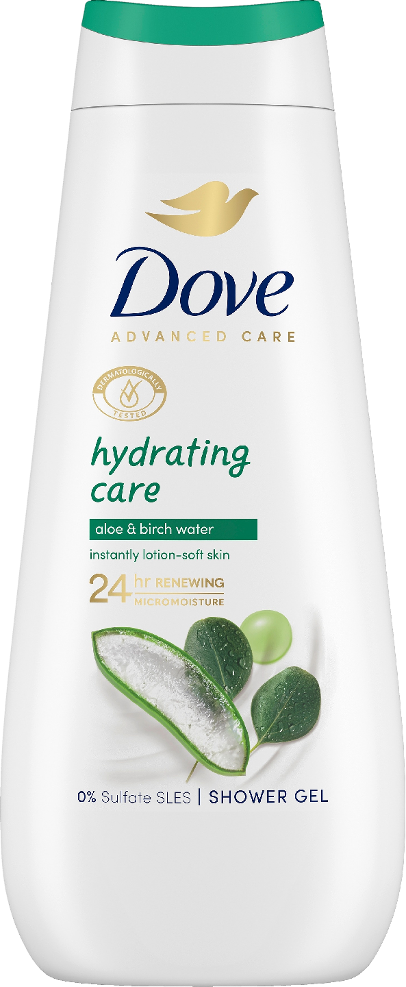 Dove Advanced Care Hydrating Care -suihkusaippua virkistää aisteja ja kosteuttaa ihoa. Suihkusaippuan sisältämä aloe vera ja koivuvesi auttavat elvyttämään ihoa jo yhden suihkukerran jälkeen. Mikä olisikaan parempi tapa herättää ihosi kuin hemmotteleva suihku, jonka jälkeen ihosi on ihanasti kosteutettu ja pehmeä kuin silkki.