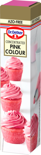 Pinkki elintarvikevärigeeli. Geeliväri on nestemäistä väriä paksumpaa, kuitenkin helposti pursotettavaa. Geeliväri on pakattu yksittäiseen tuubiin, josta väriä on helppo annostella tipoittain. Väri kannattaa lisätä kermavaahtoon tippa kerrallaan vasta vaahdotuksen lopussa, jotta kerma ei juoksetu. Näin värin määrän pystyy arvioimaan tarkemmin ja lopputulos on halutun värinen. Vahvemman mustan värin saa lisäämällä taikinaan tai kuorrutteeseen kaakaojauhetta.
