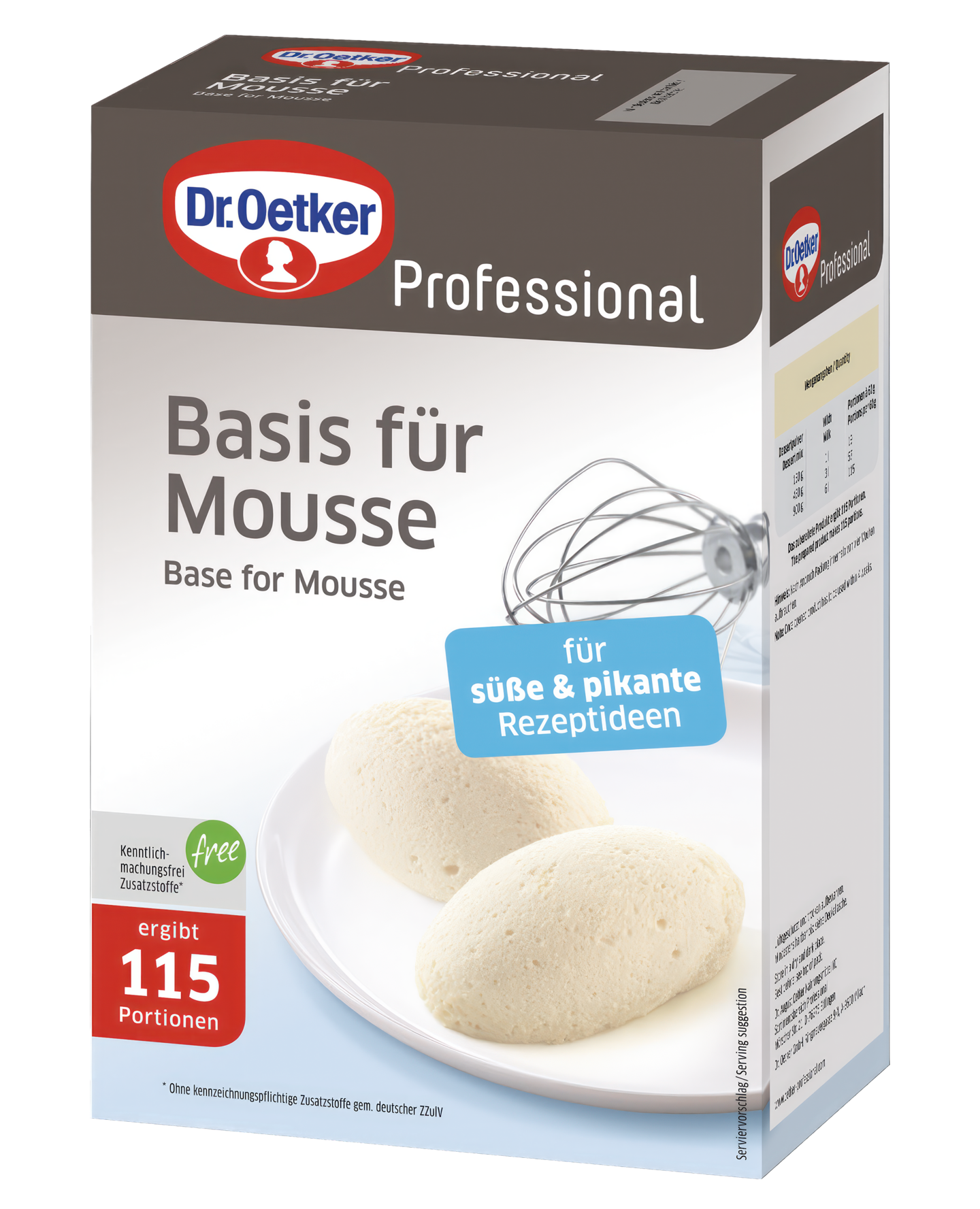 Dr. Oetker Moussepohja on keittiöammattilaisten monikäyttöinen apuri, joka taipuu sekä makeisiin jälkiruokiin että suolaisiin ruokiin. Neutraalin makunsa ansiosta sitä voi maustaa ja tuunata tarpeen mukaan. Lisää jauheeseen vain kylmä neste, vatkaa ja jäähdytä – tuloksena on ilmava ja kermainen mousse.