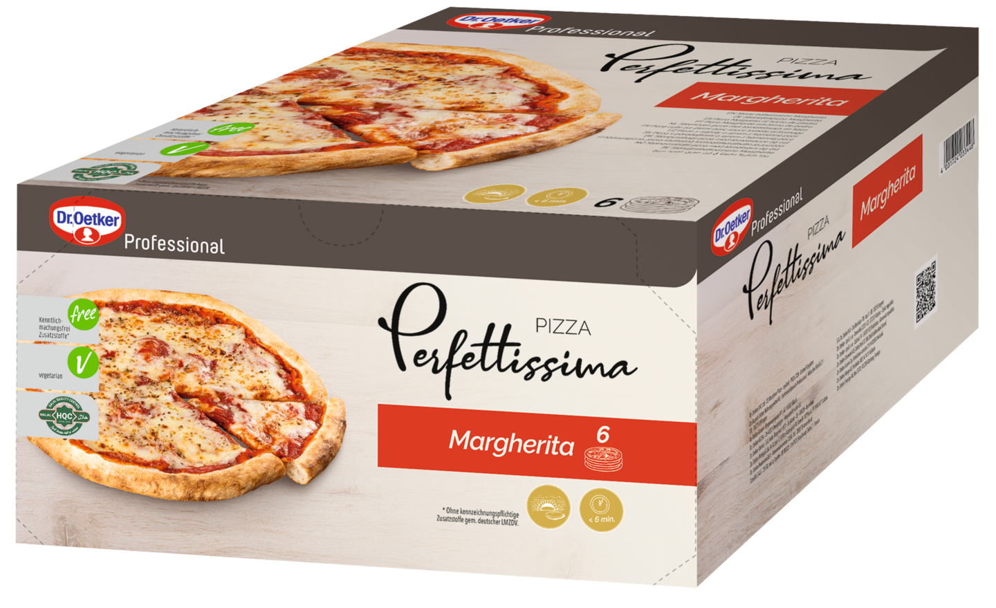 Pizza Perfettissima Margheritassa on käytetty herkullista tomaattikastiketta ja laadukasta mozzarellajuustoa. Rapeapohja ja houkutteleva ulkonäkö tekevät tästä pizzasta täydellisen valinnan asiakkaillesi. Pizzan paistoaika on alle 7 minuuttia.