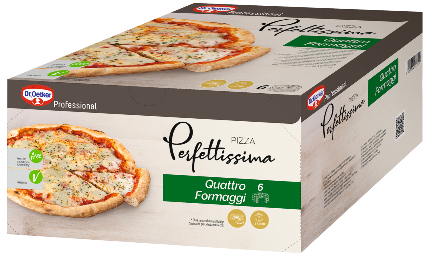 Pizza Perfettissima on kuin aito Italialainen makuelämys, rapealla kiviuunissa esipaistetulla pizzapohjalla. Pizza Perfettissima Quatro Formaggi pizzassa on käytetty neljää erilaista juustoa. Rapea pohja ja houkutteleva ulkonäkö tekevät tästä pizzasta täydellisen valinnan asiakkaillesi. Pizzan paistoaika on alle 7 minuuttia.