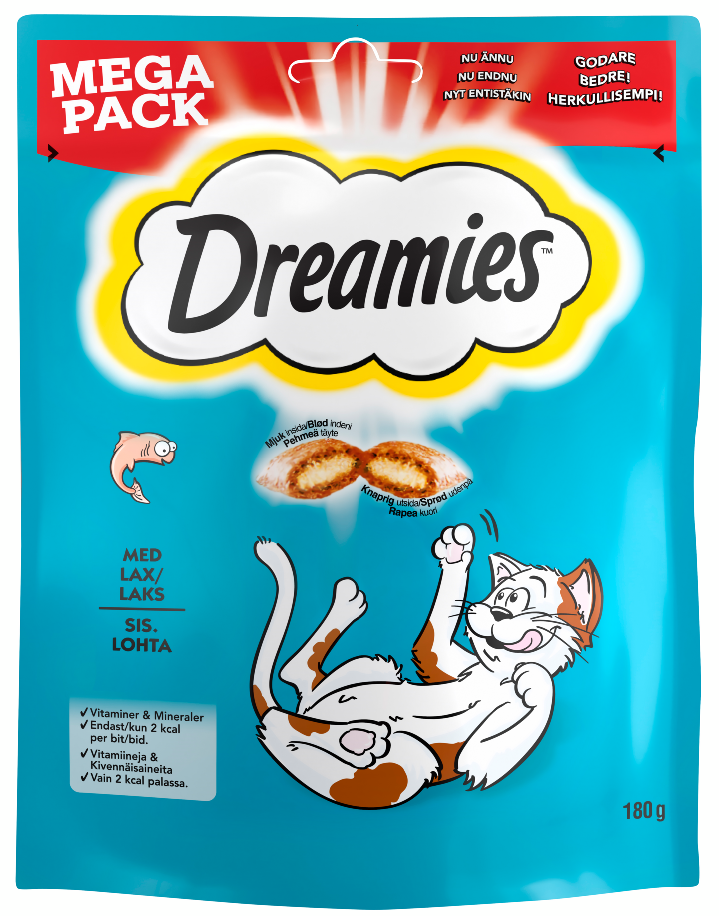 Herkullisen rapeita ulkoa ja pehmeitä sisältä. Kissojen on vaikea vastustaa herkullisia DREAMIES™-makupaloja. Emme käytä salaisia ainesosia tai taikuutta saadaksemme niistä maistuvia. Olemme vain täyttäneet ne herkullisella sisällöllä, josta kissat tykkäävät. Joten ravista pussia niin kissa rientää luoksesi!