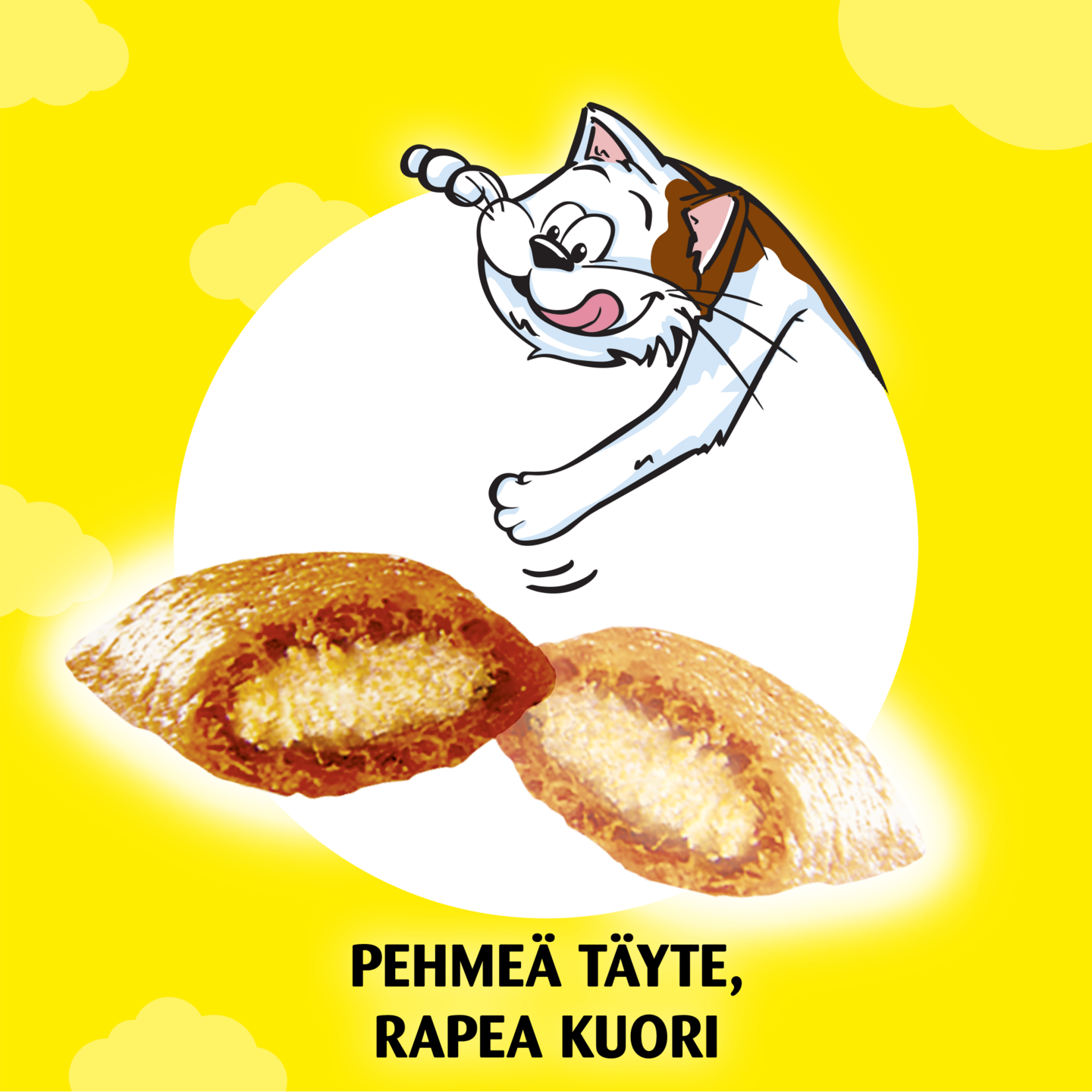 Herkullisen rapeita ulkoa ja pehmeitä sisältä. Kissojen on vaikea vastustaa herkullisia DREAMIES™-makupaloja. Emme käytä salaisia ainesosia tai taikuutta saadaksemme niistä maistuvia. Olemme vain täyttäneet ne herkullisella sisällöllä, josta kissat tykkäävät. Joten ravista pussia niin kissa rientää luoksesi!