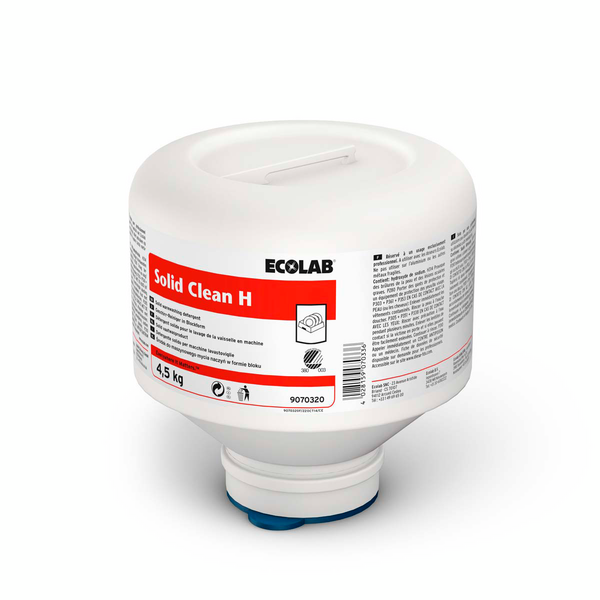 Solid Clean H- YMPÄRISTÖMERKITTY KIINTEÄ KONEASTIANPESUAINE Solid Clean H on konsentroitu emäksinen kiinteä koneastianpesuaine koviin vesiolosuhteisiin. Solid Clean H:lle on myönnetty pohjoismainen Joutsenmerkki, joka tarkoittaa, että tuote on ekologisesti hyväksytty ja täyttää sertifikaatin edellyttämät tiukat raaka-aine -ja pakkausvaatimukset. Solid Clean H:ta annostellaan Ecoplus Future -annostelujärjestelmän avulla, jolloin astiahuollon prosessin kokonaiskustannuksia voidaan seurata ja säästää veden ja energian kulutuksessa. PUHDAS - Erittäin tehokas vaativimpiinkin pinttymiin kuten tee –ja kahvitahroihin. Ehkäisee kalkkisaostumia, lopputuloksena kirkkaan puhtaat astiat TURVALLINEN - Tuotteen raaka-aineet ja pakkaus täyttävät ekologiset vaatimukset; tuote ei sisällä NTA:ta, EDTA:ta eikä klooria, ja litistettävä pakkaus tuottaa vähemmän pakkausjätettä. TEHOKAS - Puhtaat astiat kertapesulla.