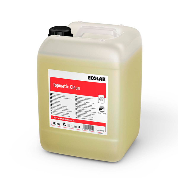 Topmatic Clean - Nestemäinen koneastianpesuaine keskikoviin ja koviin vesiolosuhteisiin. Ei sovellu alumiinille. Ympäristömerkitty.