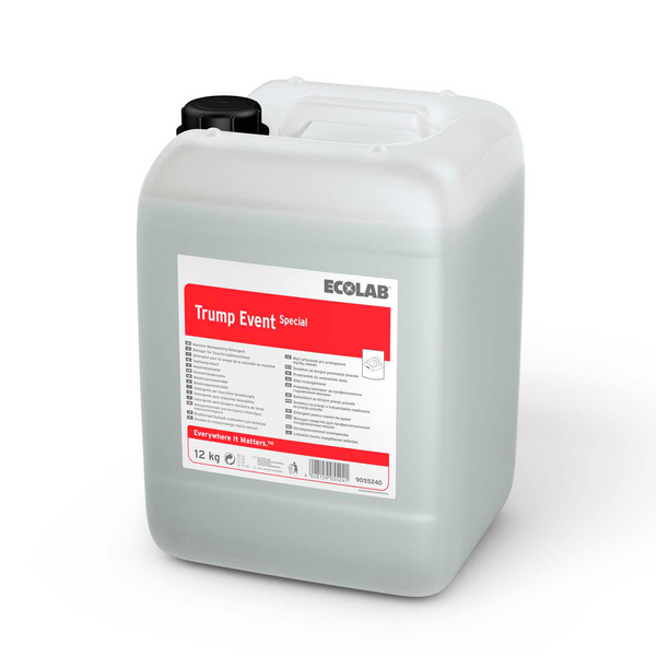 Trump Event Special on nestemäinen koneastianpesuaine pehmeisiin ja keskikoviin vesiolosuhteisiin soveltuen hyvin muun muassa lasin, posliinin, ruostumattoman teräksen ja muovin koneelliseen astianpesuun. Trump event Special estää kalkkisaostumien muodostumista ja pitää astiat kirkkaina.