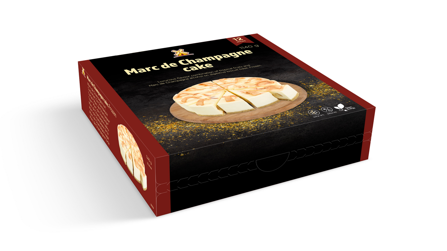 Ylellinen makuyhdistelmä trooppisia hedelmiä ja Marc de Champagne -alkoholia digestivekeksipohjalla.