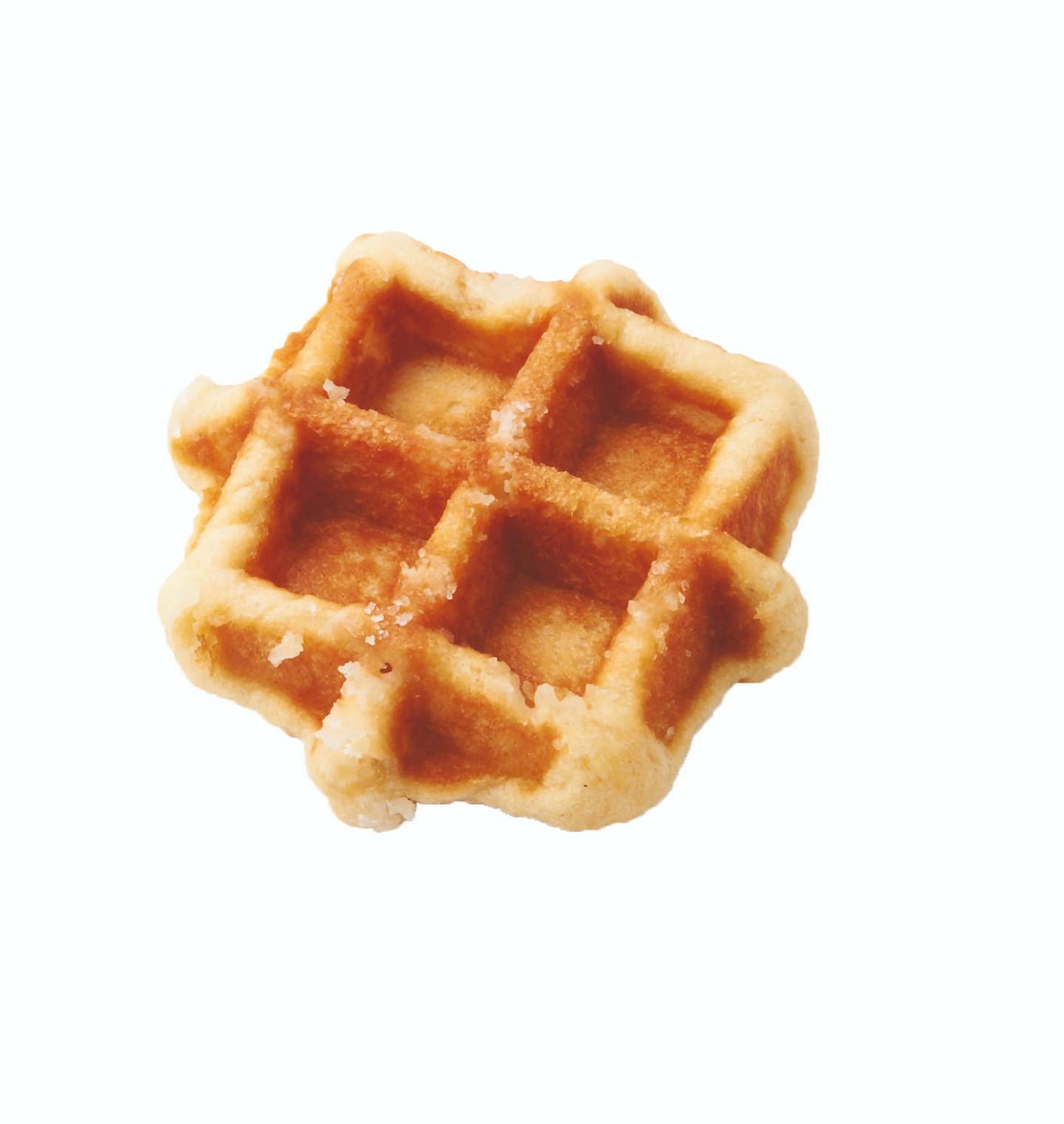 Perinteinen belgialainen minivohveli (Liege), joka on päällystetty sokerikiteillä.