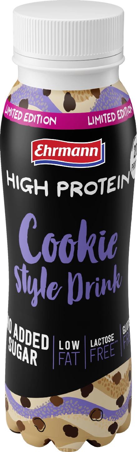 LaktoositonLaktoositon proteiinipitoinen maitojuoma, jossa trendikäs cookie style maku. Korkea proteiinipitoisuus, 20g per pullo, alhainen sokeri- ja rasvapitoisuus. Hyvänmakuinen ja nautinollinen välipalajuoma .