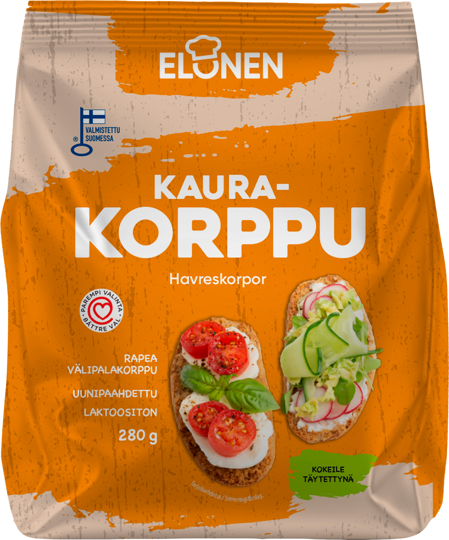 MaidotonElosen Kaurakorppu on täydellinen valinta, kun kaipaat maukasta ja terveellistä välipalaa. Rypsiöljyyn leivottu, runsaskuituinen korppu sopii loistavasti niin arkeen kuin herkutteluhetkiin. Se on maidoton ja laktoositon, joten se käy monenlaisiin ruokavalioihin. Nauti sellaisenaan tai viimeistele makuelämys tuorejuustolla ja suosikkitäytteilläsi – täydellinen lisä päiväkahvipöytään!