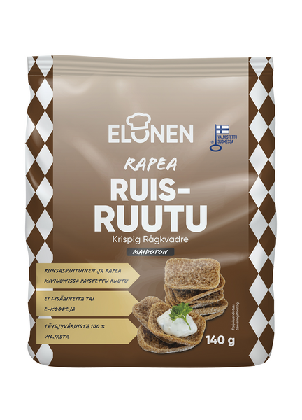 MaidotonElosen rapeat ruisruudut sisältävät jopa 16% ravintokuitua ja ne leivotaan aidosta hapanjuuritaikinasta.