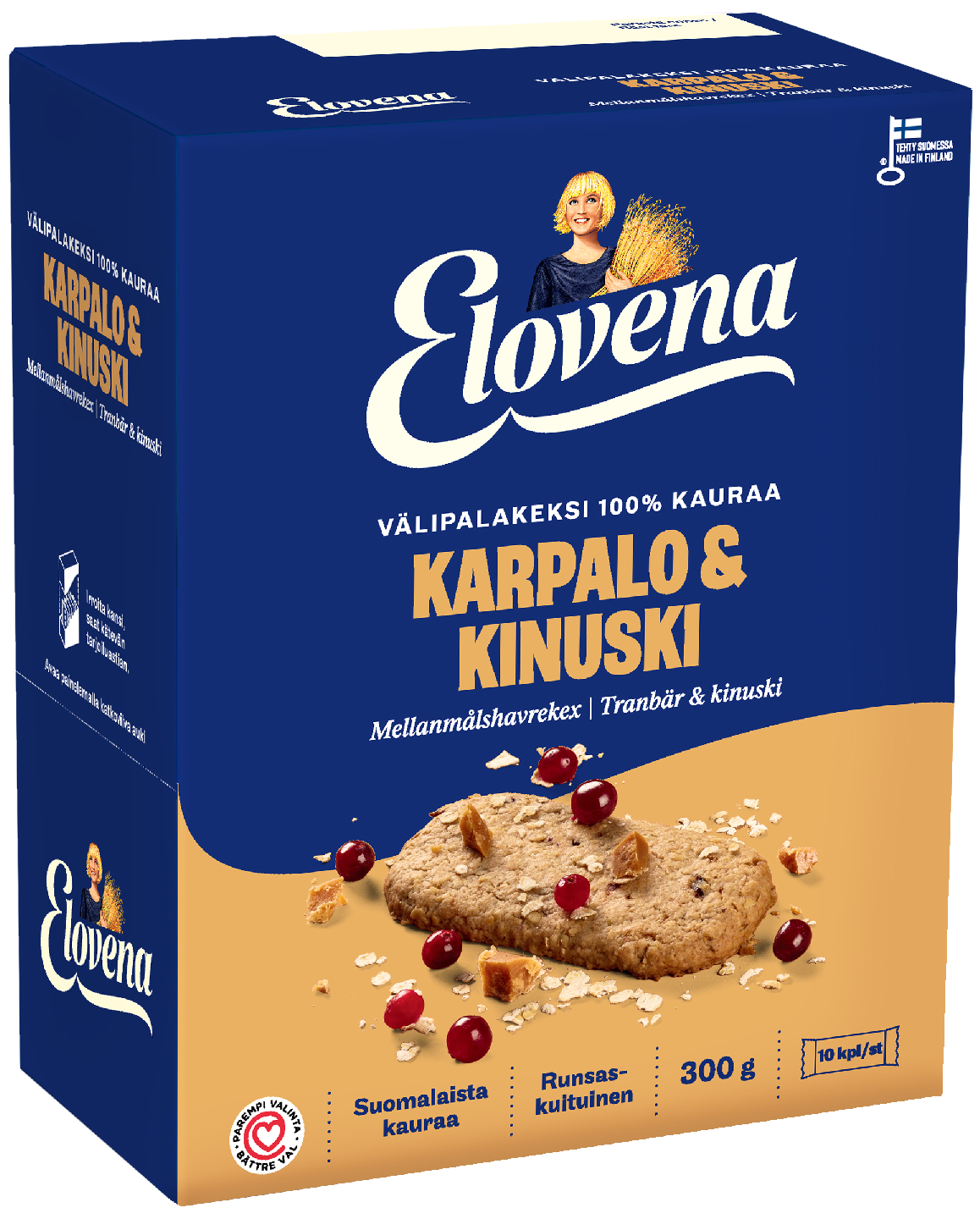 Elovena 100% kauraa välipalakeksi 10x30g karpalo kinuski