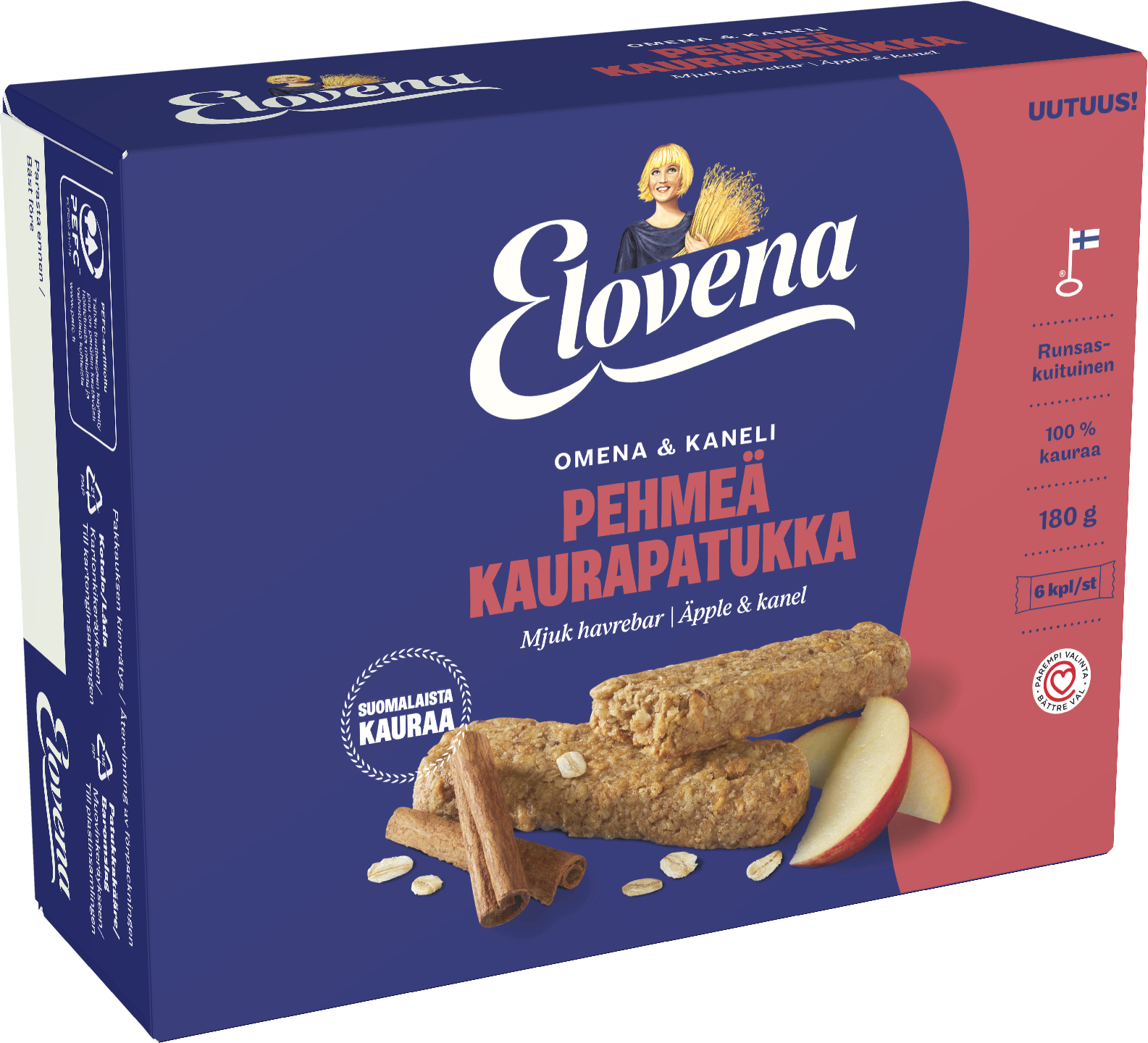 Elovena 6x30g omena-kaneli pehmeä kaurapatukka