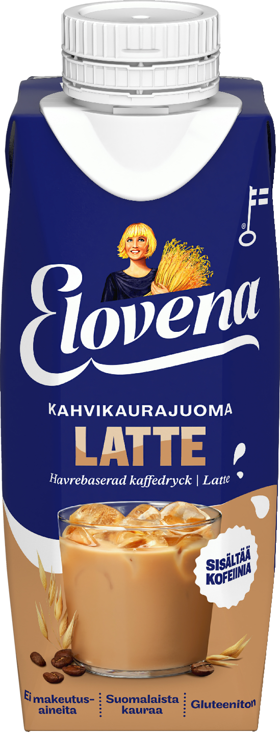 VegaaninenElovena kahvikaurajuoma Jääkahvi on herkullinen kahvijuoma, jossa on yhtä paljon kofeiinia kuin kupillisessa espressoa. Se tuo jaksamista päivääsi 100% kasvipohjaisesti ja sisältää kalsiumia ja B- ja D-vitamiineja. Juoma on valmistettu Suomessa, 100% suomalaisesta gluteenittomasta kaurasta.