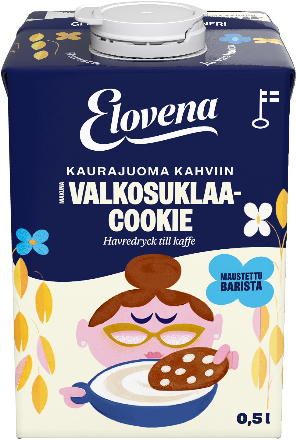 VegaaninenElovena kaurajuoma kahviin valkosuklaa cookie on herkullinen uusi tapa maustaa kahvi. Tämän tuotteen voit vaahdottaa ja tehdä sillä herkullisia erikoiskahveja. Kokeile juoda myös sellaisenaan tai lisää mausteeksi muroihin tai aamupuuroon. Toimii myös leivonnassa. Elovena -täyttä eloa.