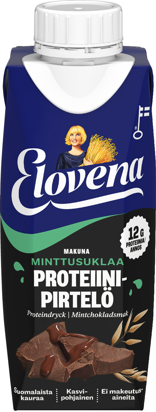 VegaaninenElovena Proteiinipirtelö on nopea ja herkullinen välipala keskellä arjen kiireitä. Se toimii loistavana välipalana myös ennen tai jälkeen treenien. Elovena Proteiinipirtelö on täysin kasvipohjainen ja valmistettu Suomessa hiilineutraalilla energialla, 100% gluteenittomasta kaurasta.