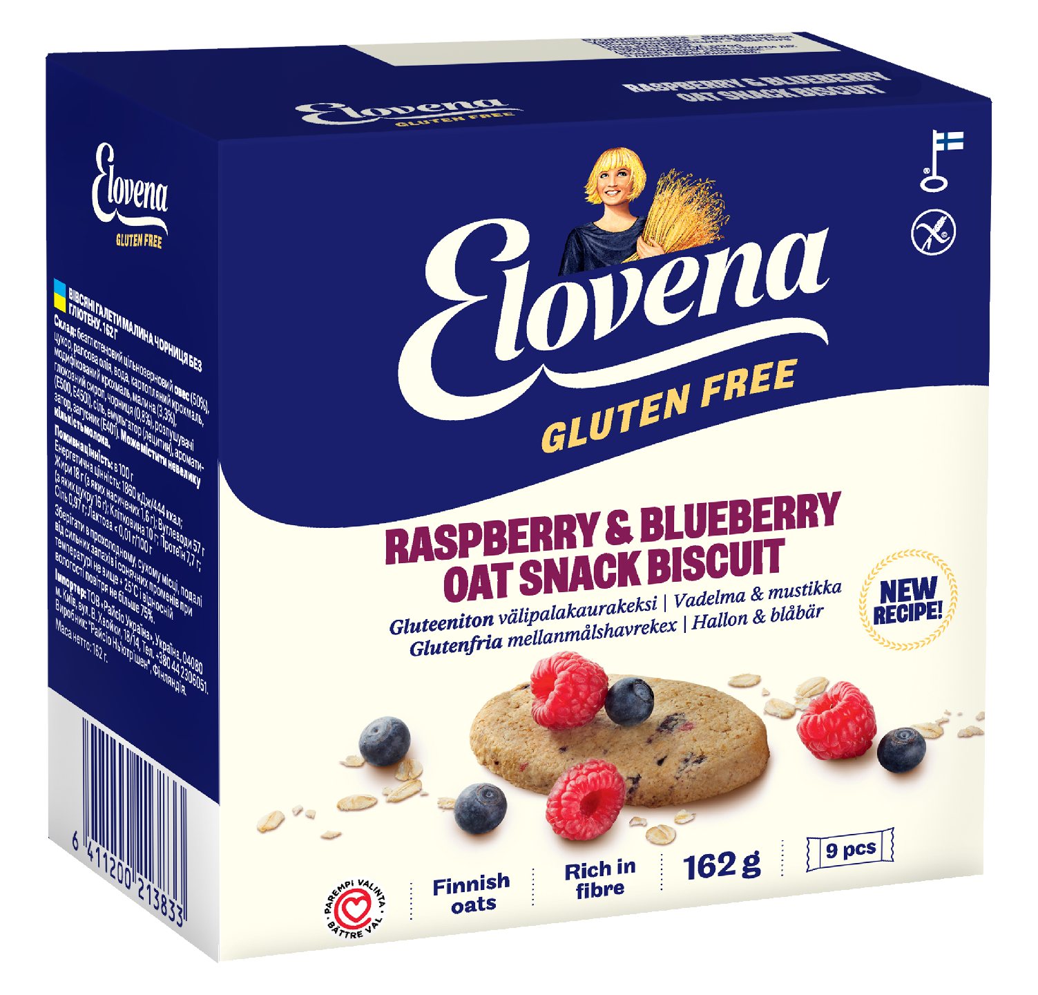 Elovena välipalakaurakeksi 9x18g vadelma-mustikka gluteeniton