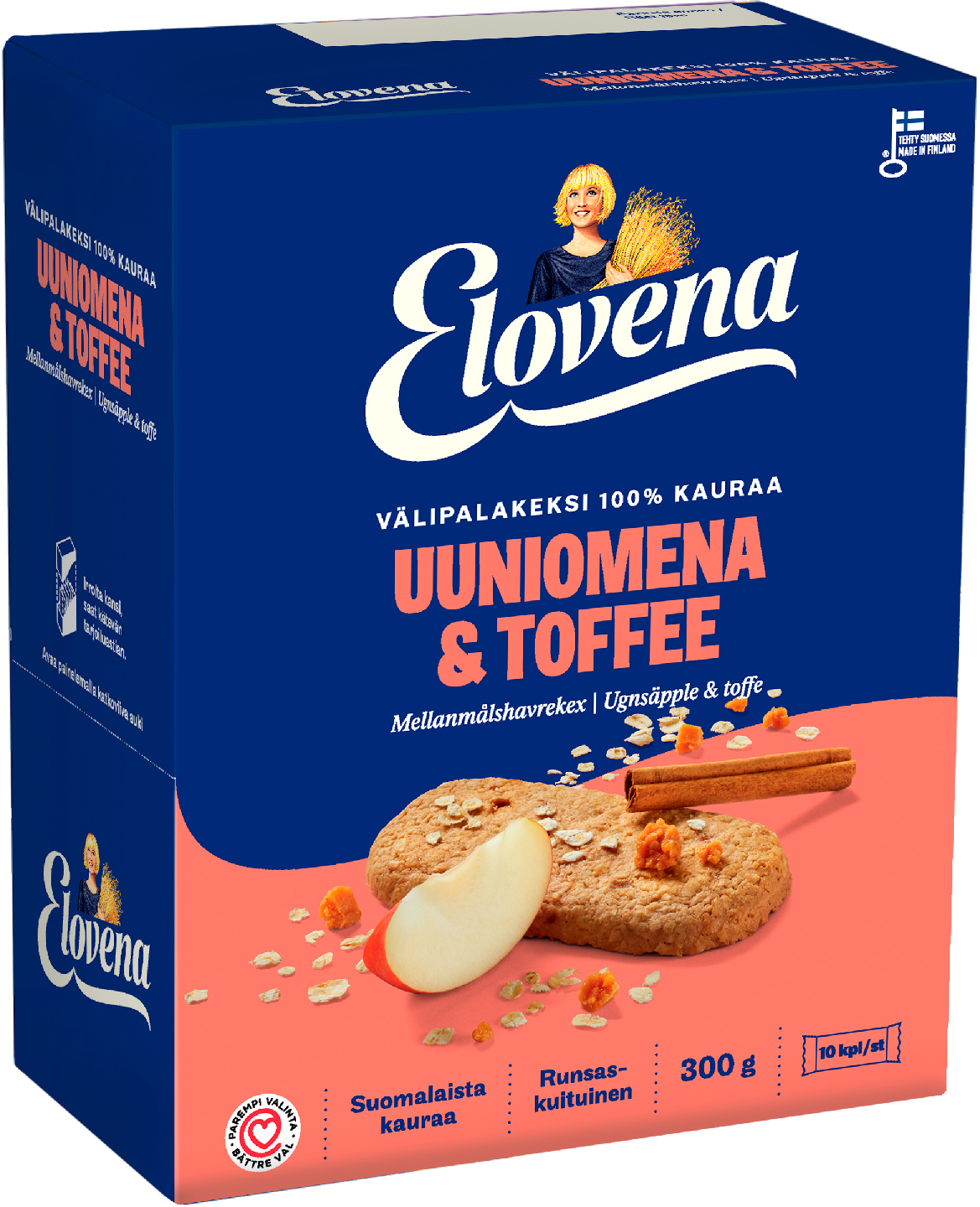 Elovena välipalakeksi 10x30g Uuniomena & Toffee