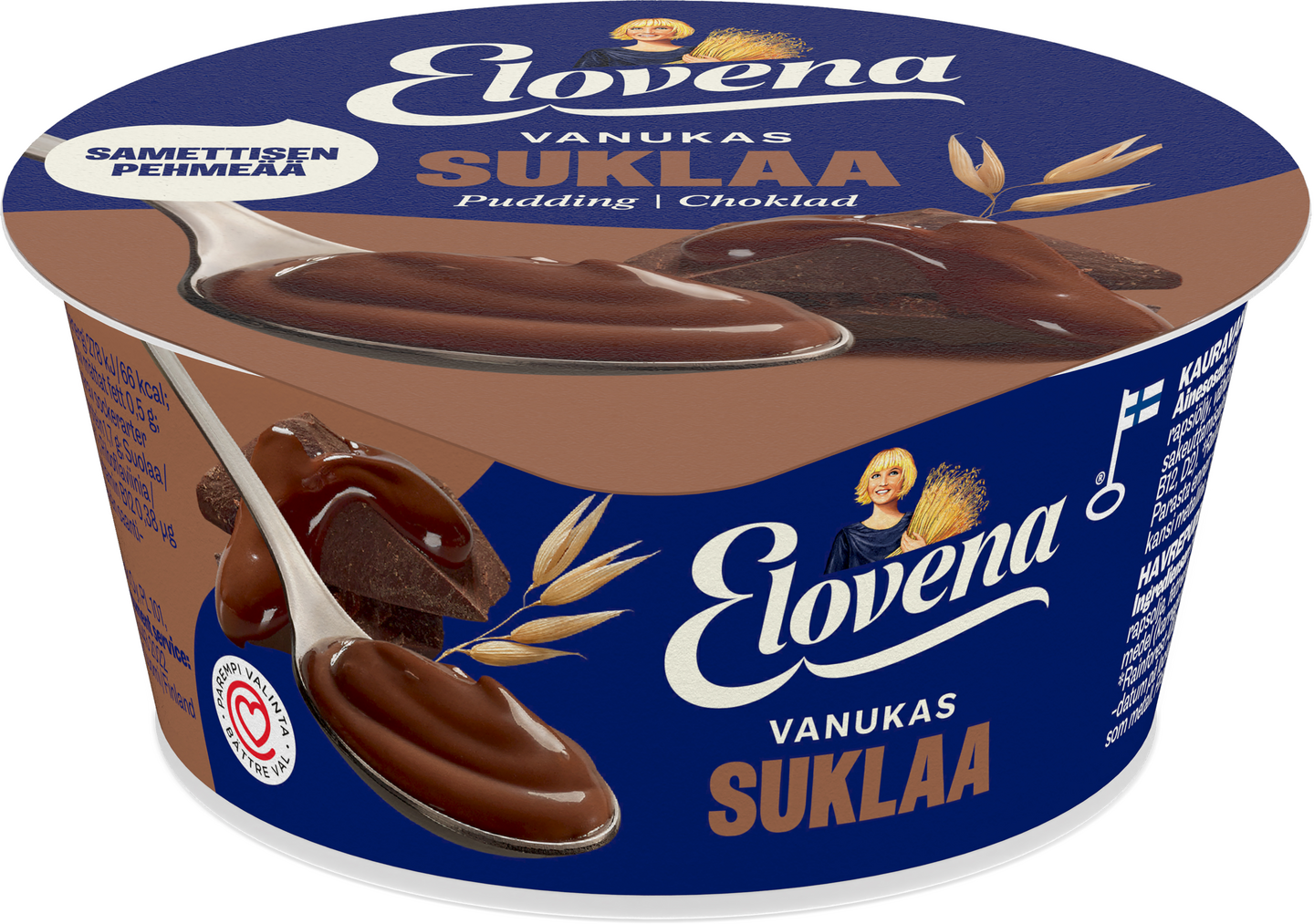 VegaaninenElovena vanukas on samettisen pehmeä ja täyteläisen suklainen kaurapohjainen vanukas. Elovena vanukkaille on myönnetty Sydänmerkki, mikä kertoo, että ne ovat tuoteryhmässään parempi valinta sokerin määrän ja rasvan laadun suhteen. Elovena vanukas on terveellisempi, kasvipohjainen vanukasvaihtoehto välipalaksi tai jälkiruoaksi, ilman keinotekoisia makeutusaineita. Vanukas on valmistettu hiilineutraalilla energialla Raisiossa suomalaisesta kaurasta. Täyteläisen herkullinen vanukas on saatavana kahdessa suosikkimaussa: suklaa ja kinuski. Pakkaus on kokonaan kierrätettävä: kansi lajitellaan metallinkeräykseen, purkin sisäosa muovinkeräykseen ja irrotettava pahvivyöte kartonkikeräykseen.