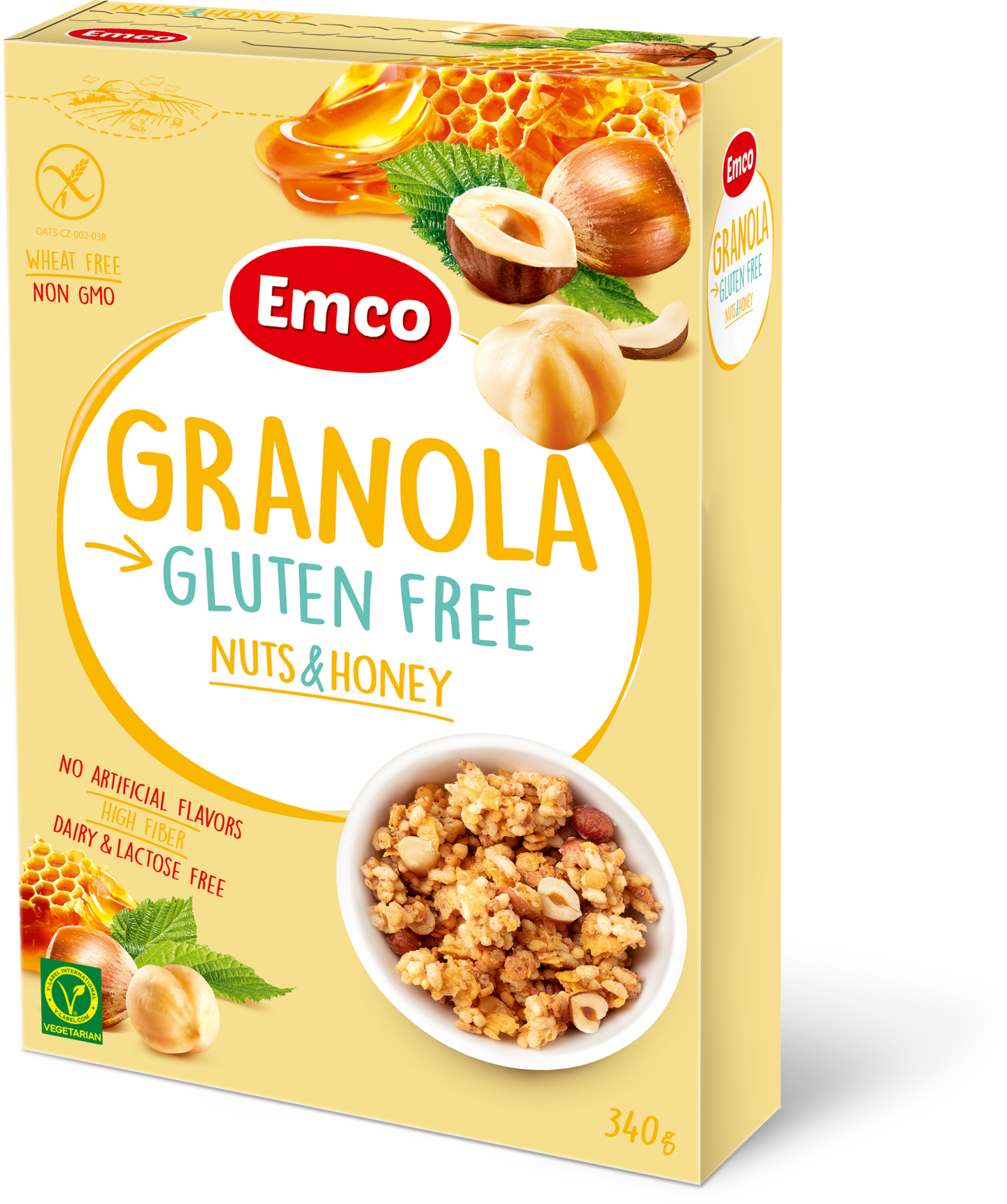 Emco Gluteeniton Granola Hunaja & Hassepähkinä 340g