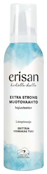 Erisan Extra Strong Muotovaahto antaa erittäin voimakkaan tuen kampaukselle. Muotovaahto sisältää B5-provitamiinia ja antaa hiuksille elastisuutta sekä kiiltoa. Auttaa suojamaan hiuksia lämpökäsittelyn aikana. Ei sisällä hajusteita, silikoneja eikä alkoholia.