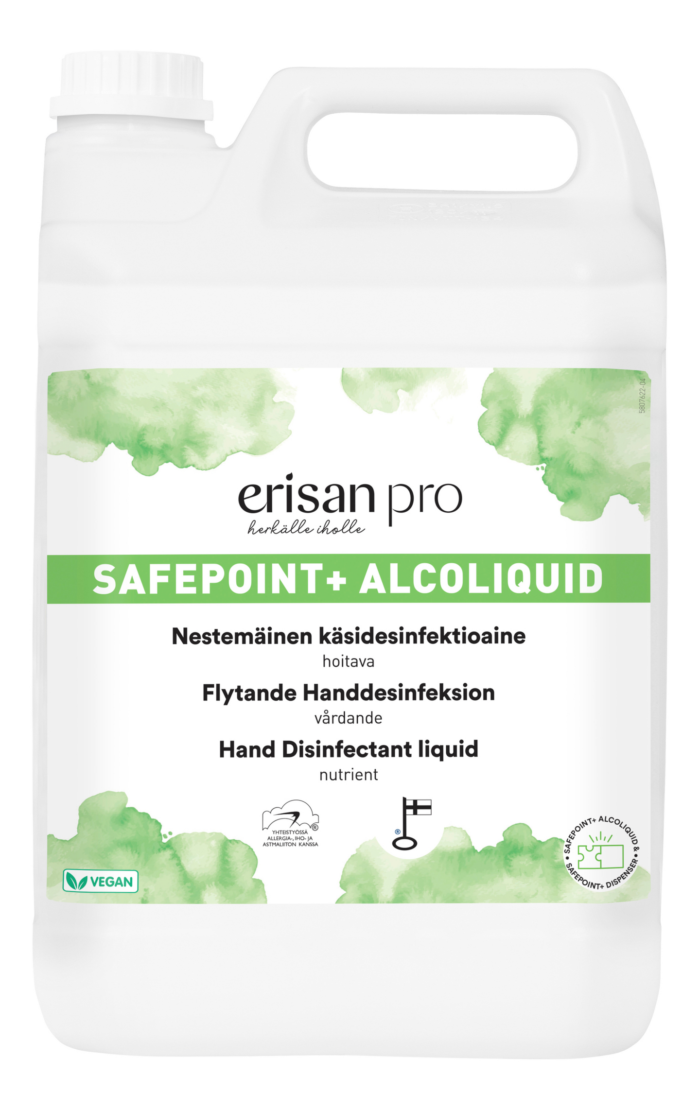 Hyvän käsihygienian ylläpitämiseksi tarkoitettu etanolipohjainen käsidesinfektioaine. Tarkoitettu käytettäväksi erityisesti automaattisessa Erisan SafePoint+ käsidesinfektioannostelijassa sekä teollisuuden hygieniaporteissa. Tehoaa monipuolisesti eri bakteereihin, viruksiin ja hiivoihin, mm. noro- ja koronavirukseen.
