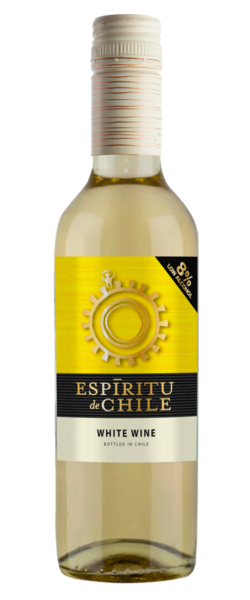 Espiritu de Chile White valkoviini, alkoholi poistettu osittain, 8 til-% 37,5cl plo Puolikuiva, keskihapokas, päärynäinen, hunajameloninen, omenainen Rypäleet: Chardonnay, Gewürztraminer Ruokasuositukset: Kana, pasta ja risotto, mausteinen ruoka