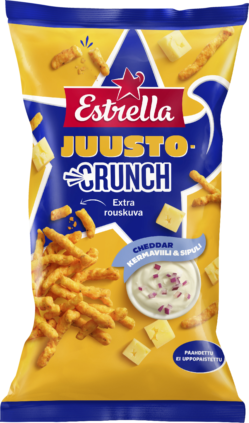 Estrella Crunch Cheddar Kermaviili & Sipuli juustosnacks 200g