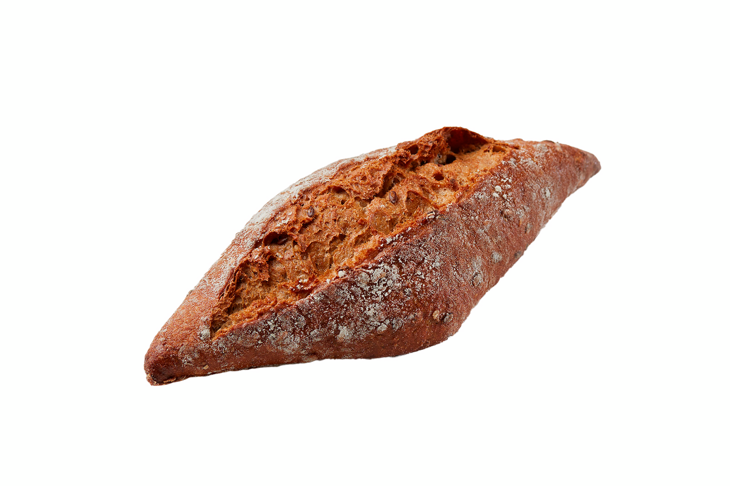 VegaaninenRuista, ohra, kauraa sekä pellavansiemeniä sisältävä rustiikkinen timanttisämpylä sopii loistavasti erilaisille täytevaihtoehdoille sekä salaattien kylkeen.