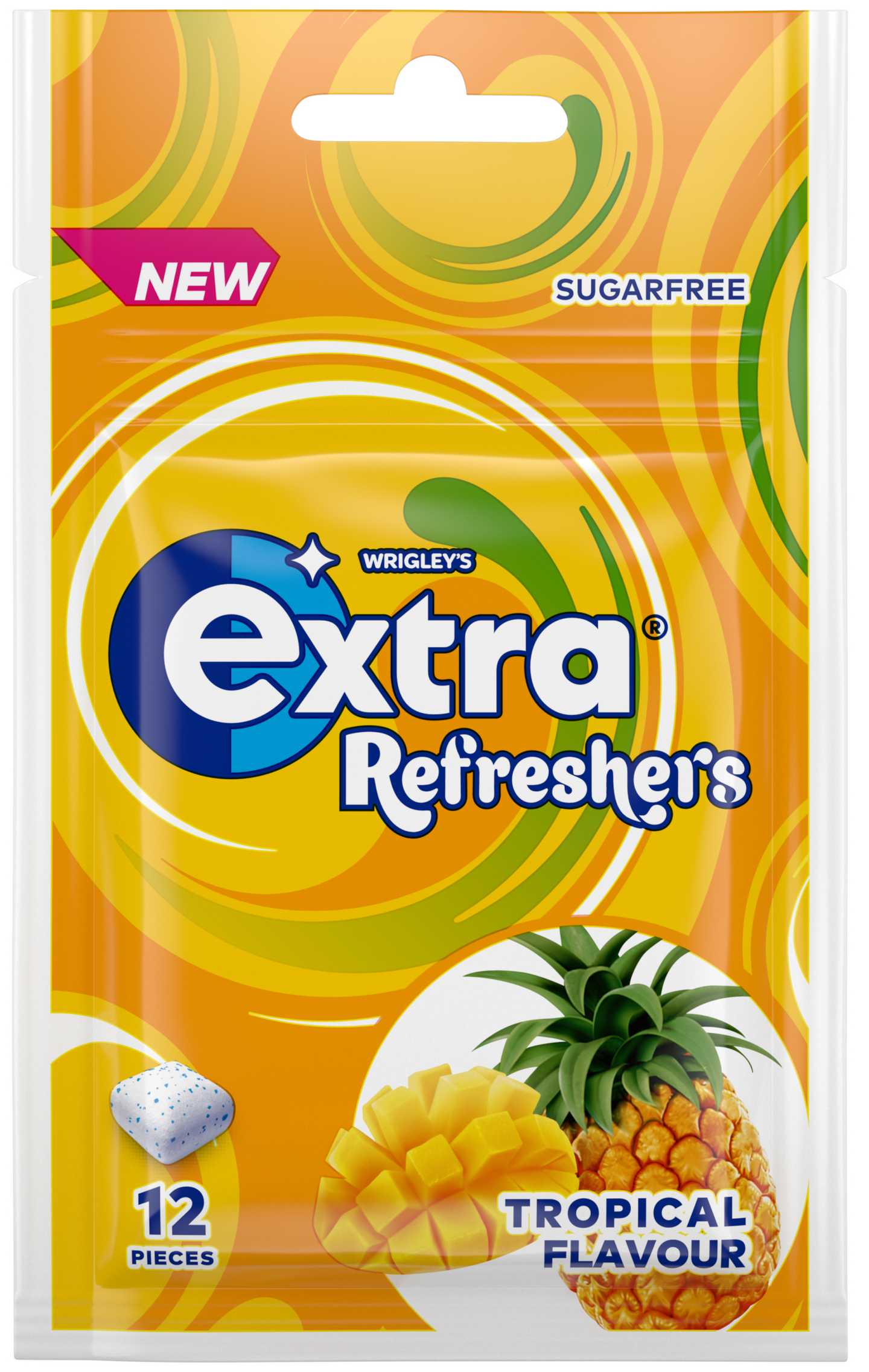 Extra Refreshers Bubblemint – sokeriton ksylitolipurukumi, jossa on rapea kuori ja pehmeä sisus. Ihanan hedelmäinen Tropical-maku kestää pitkään. Kätevässä uudelleensuljettavassa pussissa.